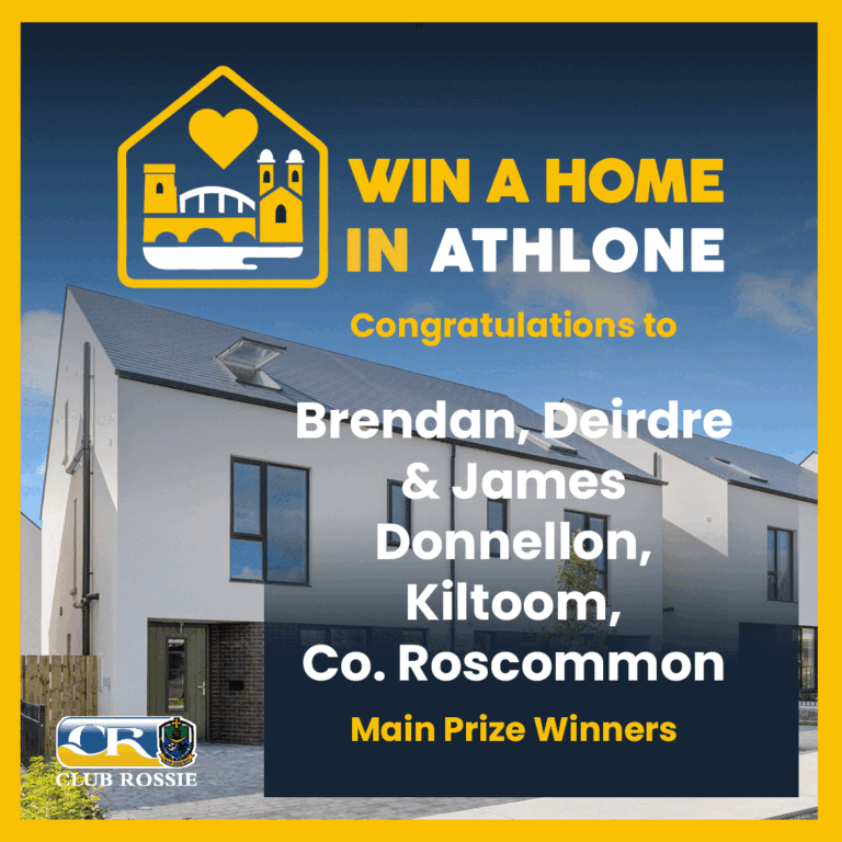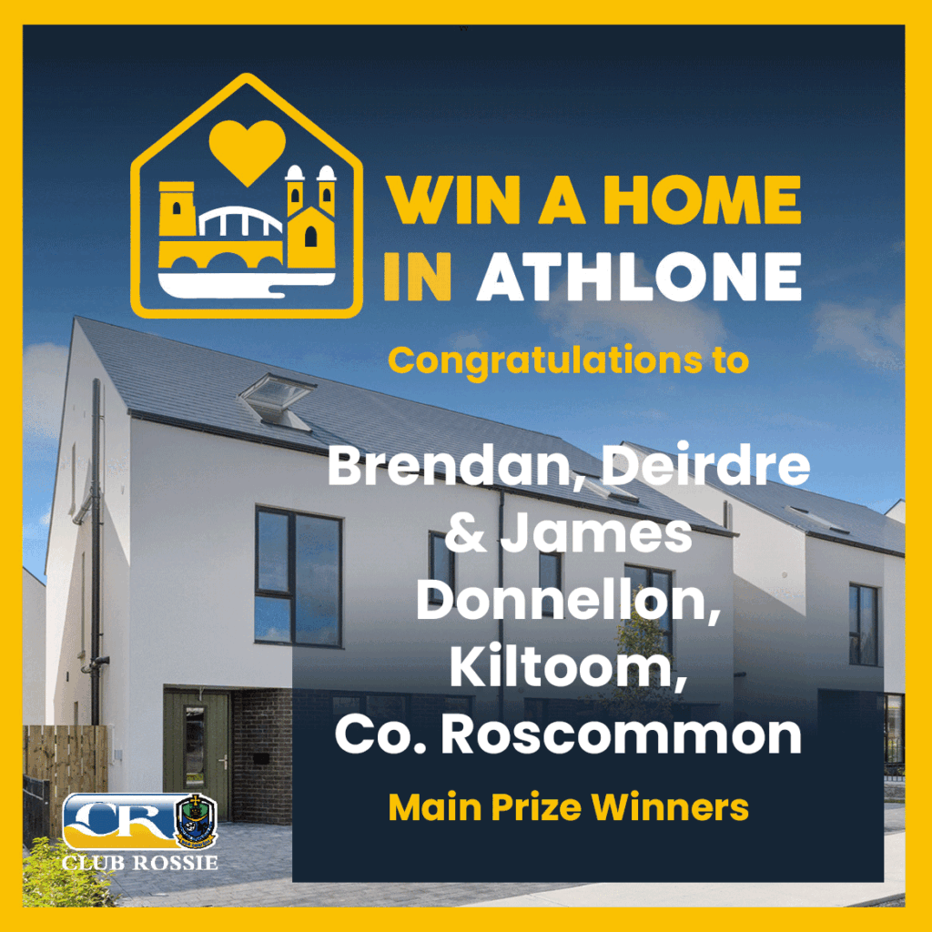 Win A Home In Athlone was the latest in a series of fundraisers undertaken by Club Rossie, the commercial and fundraising arm of Roscommon GAA following similar draws for homes in Dublin, London and Kildare. This time around, funds raised from the Draw will go towards the development of Gaelic Games in County Roscommon from day to day activities such as coaching and games development to capital projects including the continued development of King and Moffatt Dr. Hyde Park and progressing the Dermot Earley Centre.